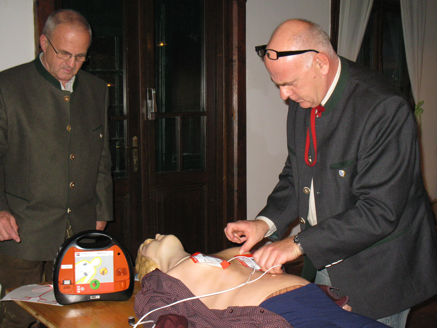 Freuen konnte sich der neue Obmann auch gleich über zwei Defibrillatoren, die auf kurzem Wege von den Anningergemeinden finanziert wurden, und nun auf der Krausten Linde und dem Anningerhaus montiert werden. Dazu gab es vom Fachmann Ing. Wilhelm Wienerl eine Demonstration für alle Anwesenden zur Handhabung der Geräte. Künftig wird es Vorschrift sein, dass Berghütten mit einem Defibrillator ausgestattet sind, um einen “plötzlichen Herztod” zu vermeiden und Leben zu retten, weiß Karl Burg und bedankt sich bei den Sponsoren.