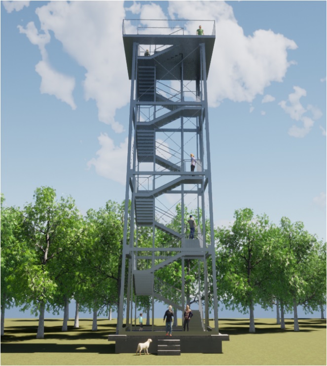 Der fertige Turm zeigt sich sehr ästhetisch, schmal, regelrecht filigran, er ist aber gleichzeitig überaus funktional. Die flachen Treppenstufen machen das Besteigen leicht, die Breite von 1,20 m erlaubt, dass 2 Leute bequem nebeneinander gehen können. Die riesige oberste Plattform in der Größe von 7×7 Metern gibt ein Gefühl von Freiheit und Weite.
